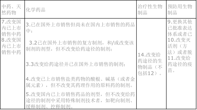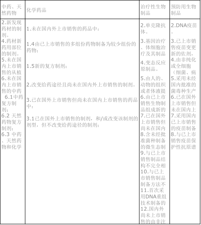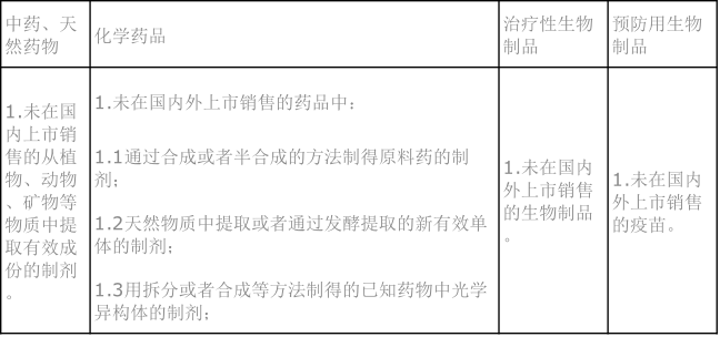 表1:以下情形的新藥設立5年的監測期