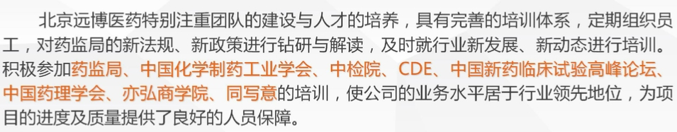 注重對員工的技術培訓,積極參加國家藥監總局、藥審中心、器械審評中心及各學術團體舉辦的專業培訓及會議;